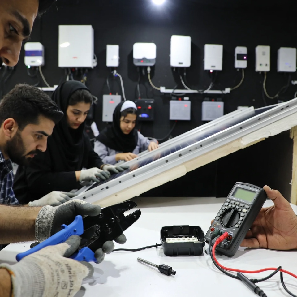 - روز دوم: آچار به دست میگیرید! تمام مراحل نصب، از بستن سازه و استراکچر تا سوکتزنی کابلها و راهاندازی اینورتر را به صورت عملی روی ماکتهای واقعی انجام میدهید. این متد آموزشی «بوتکمپ» (Bootcamp) نام دارد که در سریعترین زمان، مهارت خالص را منتقل میکند.
